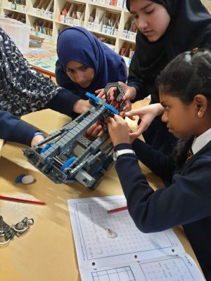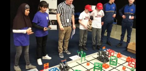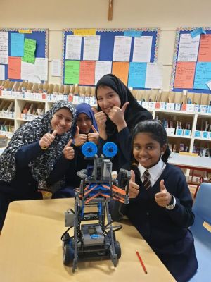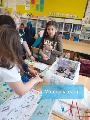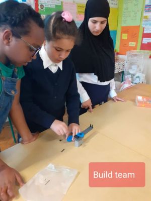 Design Team: This team was broken up into materials, build & design. We started building the Stretch (using step by step instructions), then realised it was too tall for competition rules. Changed to the clutch, then realised this only picks up balls and our master builder Sameera designed our own robot using trial and error. Our future engineers!