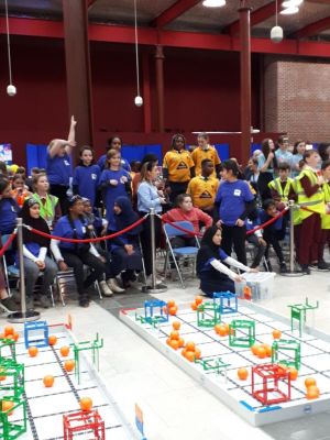 Coding Team: These girls taught themselves how to code using online tutorials and trial and error. They worked hard to be able to score as many points as possible using saved coding blocks in the 1 minute time limit.